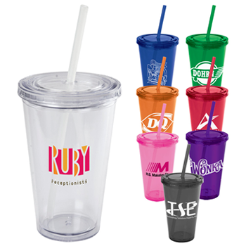 16 oz double wall translucent acrylic Cup has screw-on lid with straw guards against spills and splashes. Includes matching colored reusable straw. BPA Free & Eco-Friendly.